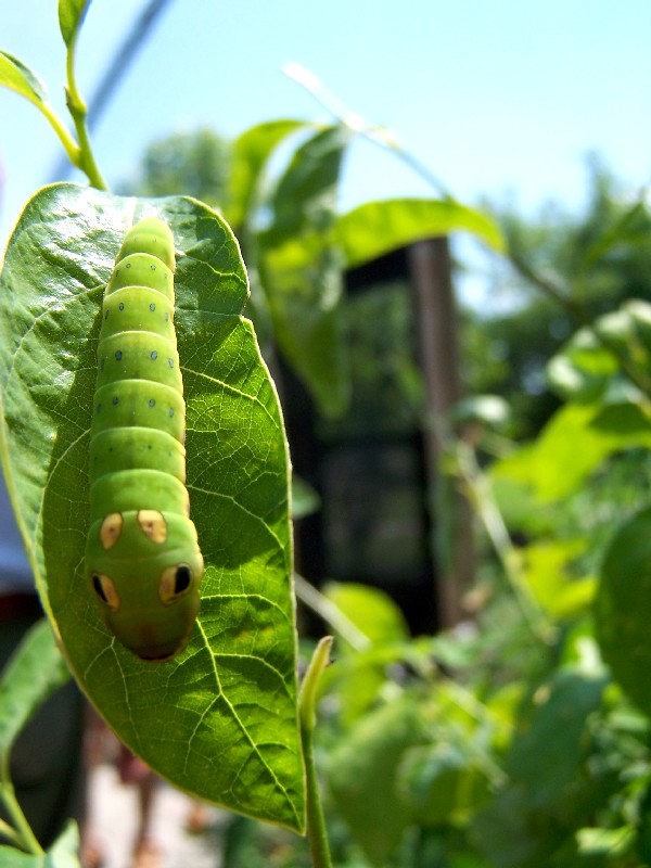 Are those caterpillars not the cutest?  What you think are eyes and a mouth aren't!  Those are markings on top of his head.  His real eyes are just below what appears to be his mouth!